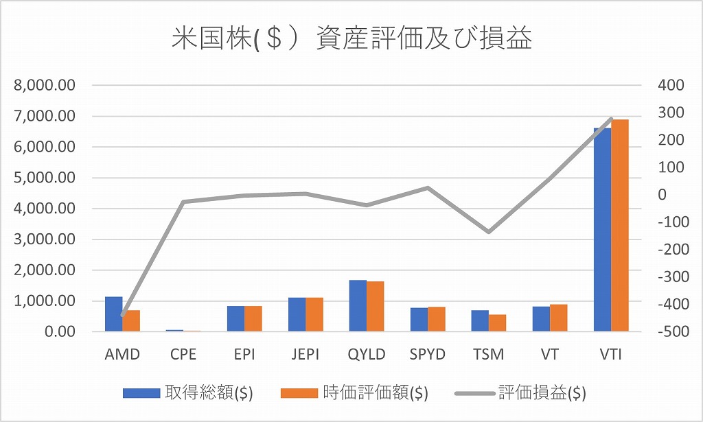 購入銘柄:VT、VTI、EPI、SPYD、QYLD、JEPI