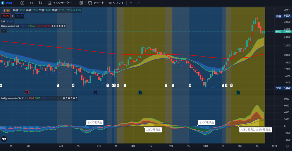 特に直近のレーザーテックの上昇は米国の半導体関係の底打ち感が出たことにより、下落し過ぎていたこちらの株が積極的に買われたことにより我が塩漬け筆頭格のレーザーテック3株を11月11日に27,210円で売却し+7,263円で利確できました。