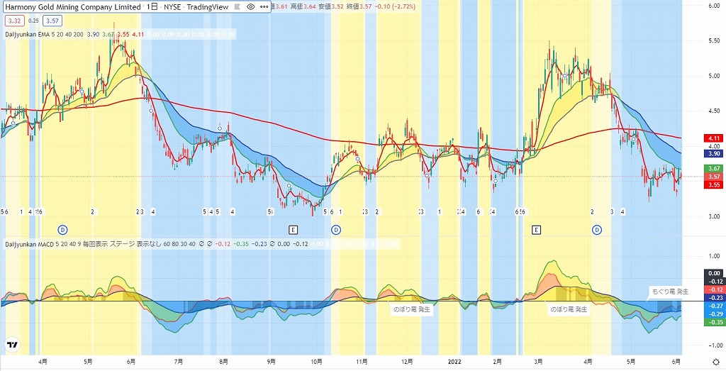 HMYは1950年8月25日に南アフリカで創業し米国株のセクターの中でも金鉱株として発掘コストの高い会社で金の価格より先行して株価が動く銘柄の一つになります。