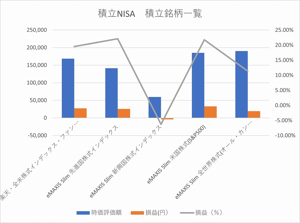 | 5 | 積立NISA | eMAXISslim先進国 | 116000 | 141639 | 25639 | 22.1 | 4000円積立 |