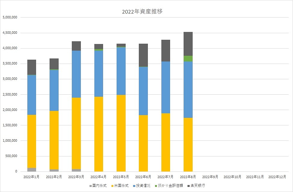 2020年1月から投資を開始してからの現在2022年8月19日時点の保有銘柄の資産状況の推移をご紹介します。
